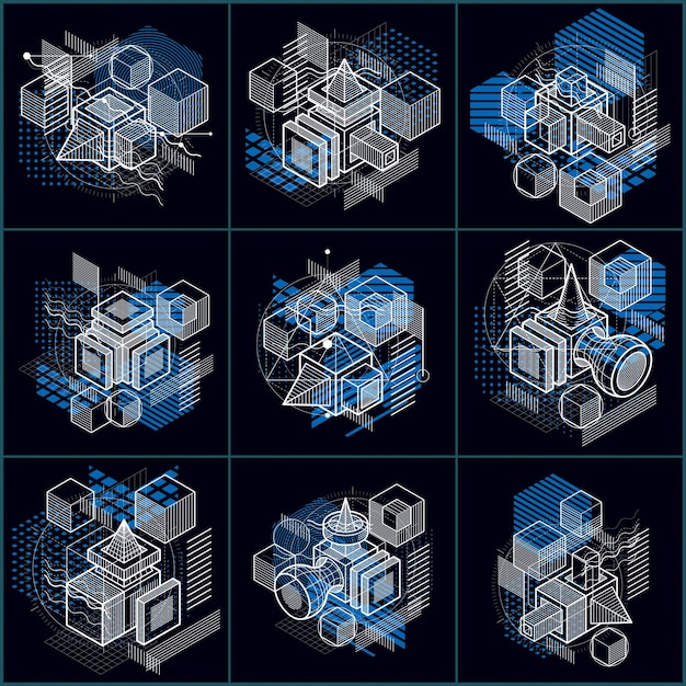 3D абстрактные векторные изометрические фоны. Макеты кубов, шестиугольников, квадратов, прямоугольников и различных абстрактных элементов. Векторная коллекция.3D абстрактные векторные изометрические фоны. Макеты кубов, шестиугольников, квадратов, прямоугольников и различных абстрактных элементов. Векторная коллекция.