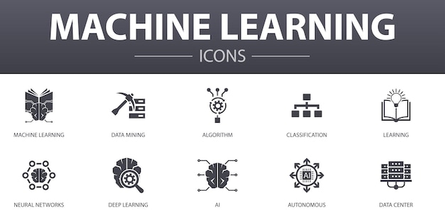 Набор иконок простой концепции глубокого обучения. Содержит такие значки, как алгоритм, нейронная сеть, AI, машинное обучение и многое другое, может использоваться для Интернета, логотипа, UI / UX
