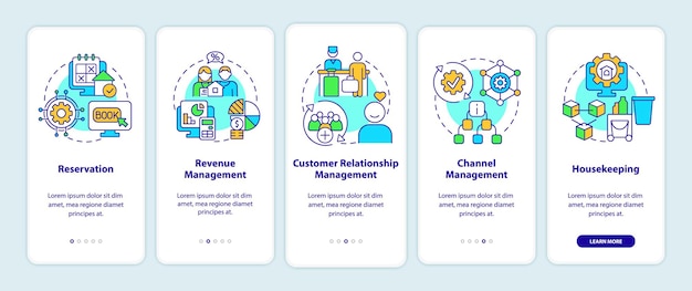 Модули управления недвижимостью на экране мобильного приложения. Пошаговое руководство по автоматизации, состоящее из 5 страниц графических инструкций с линейными концепциями. Пользовательский интерфейс, UX, шаблон графического интерфейса. Используемые шрифты Myriad Pro-Bold, Regular